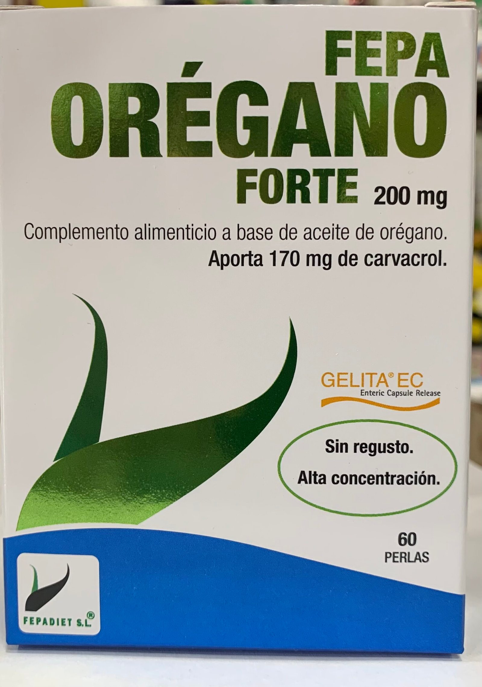 Fepa orégano es uno de los más concentrados en carvacrol. Usado en problemas digestivos, bronquiales, infecciones viricas, bacterianas, fúngicas, procesos inflamatorios…Una perla aporta 170mg de carvacrol (principio activo del aceite esencial de orégano.